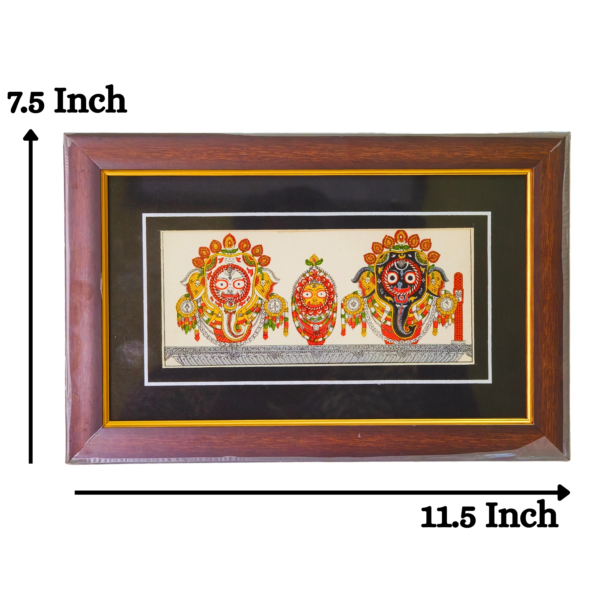 This Shree Jagannath Balabhadra Subhadra Wall Painting (11.5 x 7.5 Inch) is a beautifully designed devotional artwork that brings spiritual charm to your home. The painting features Lord Jagannath along with Balabhadra and Subhadra, representing the sacred trio worshipped in Puri.