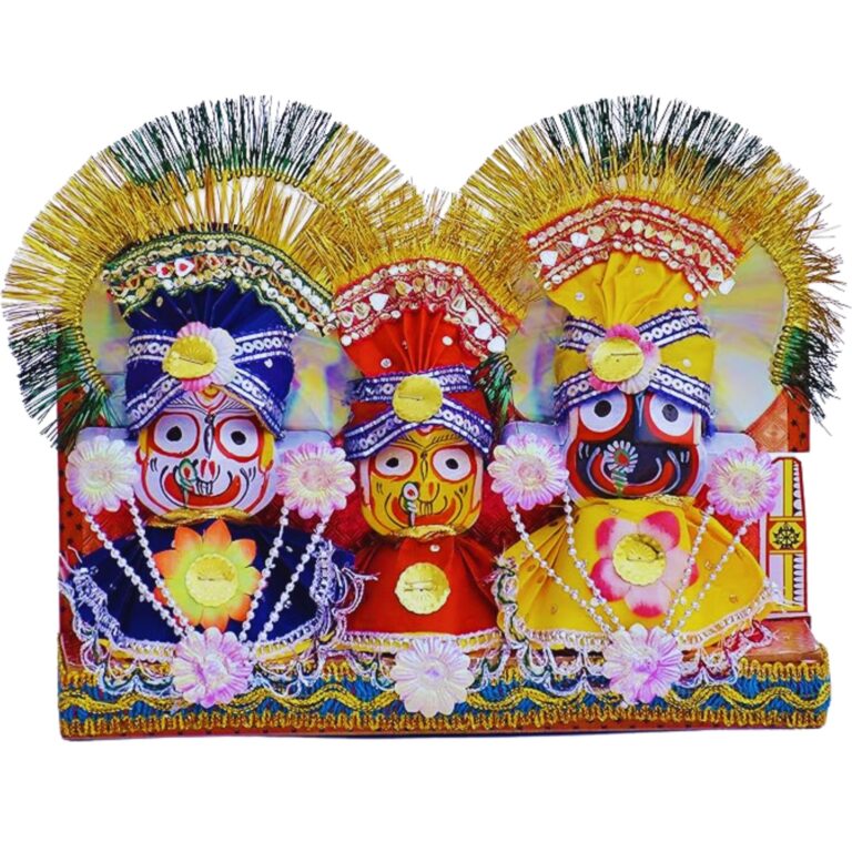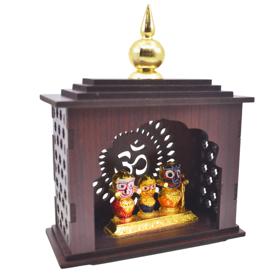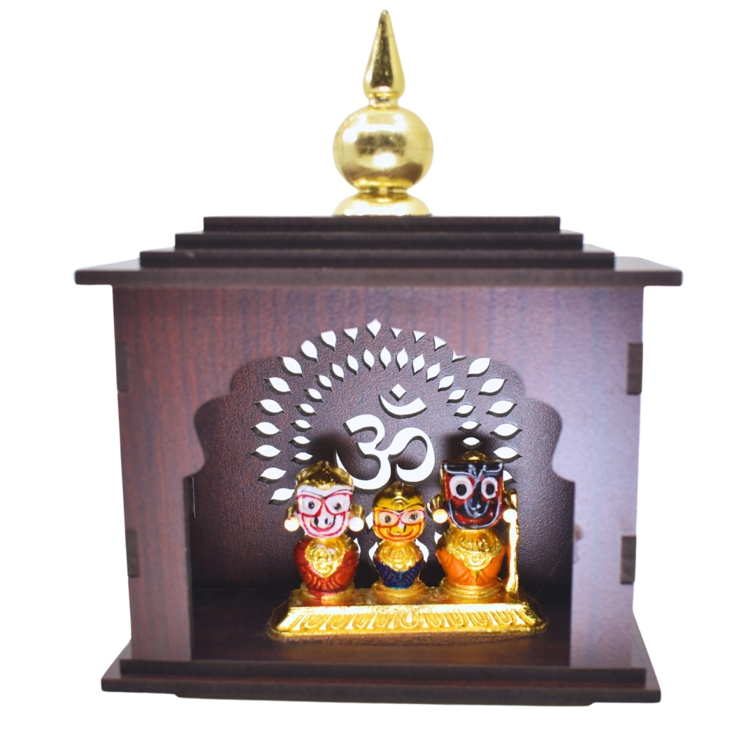 This Lord Jagannath metal idol in a small wooden temple brings the divine essence of Jagannath Puri into your home. Measuring 13 cm in height and weighing 175 gm, the idol is compact yet beautifully detailed. The temple structure is made of wood, housing the metal murti crafted with traditional design.