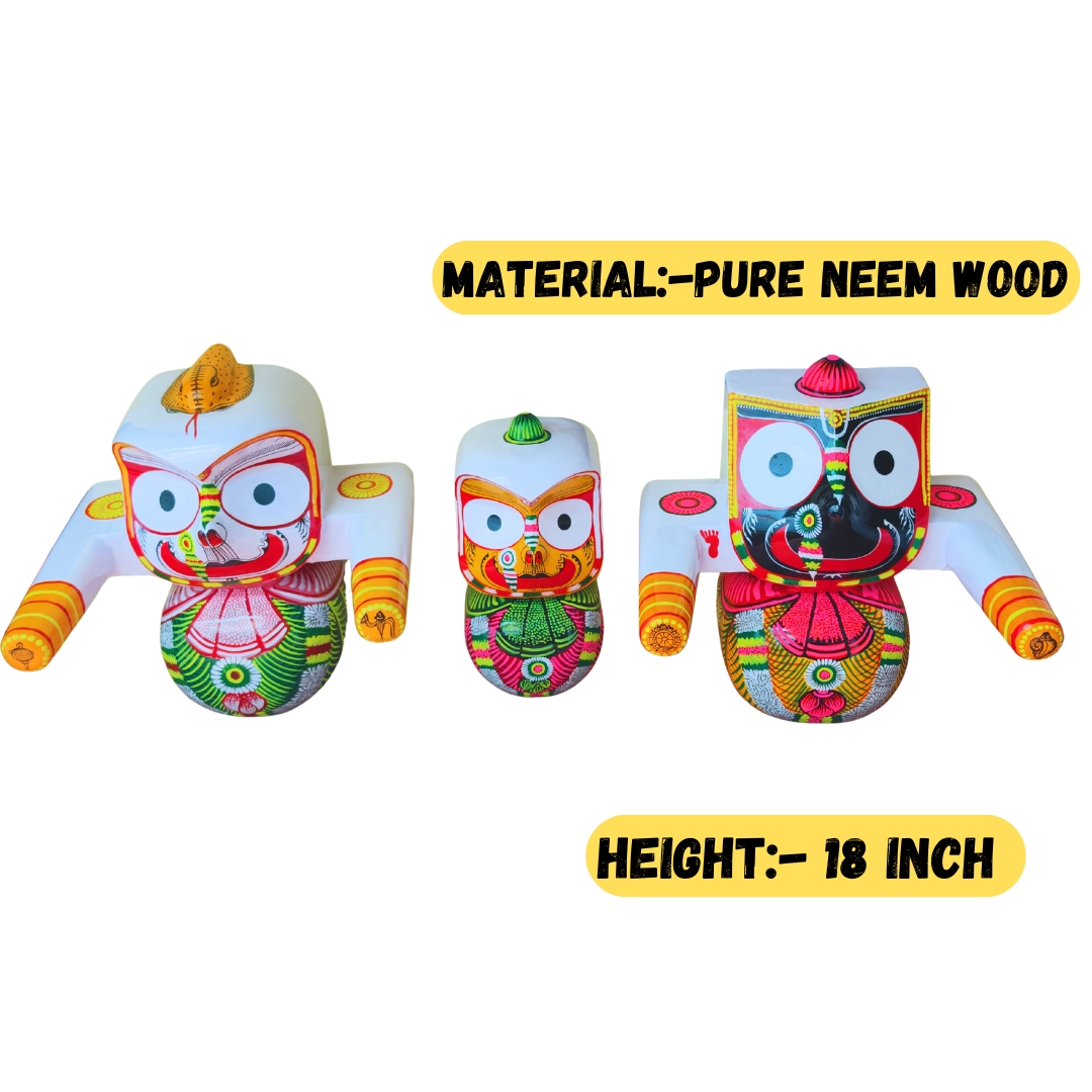 Designed in the traditional Puri style, the idols reflect the rich cultural and spiritual heritage of Odisha. Each piece is carefully crafted by skilled artisans to maintain authenticity and devotional character.