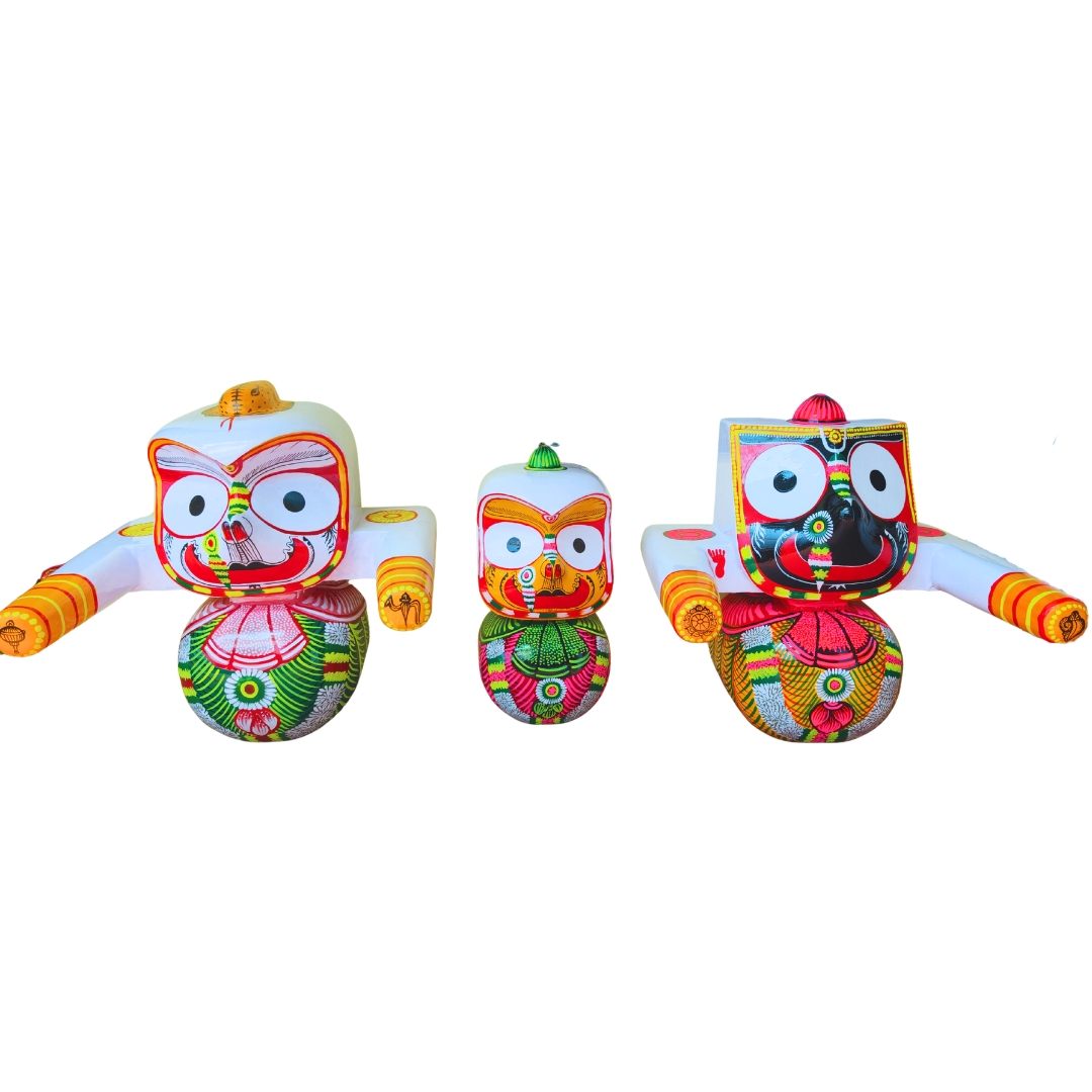 This idol set is suitable for daily puja, festive occasions like Rath Yatra, and spiritual gifting, representing the timeless handicraft tradition of Odisha.