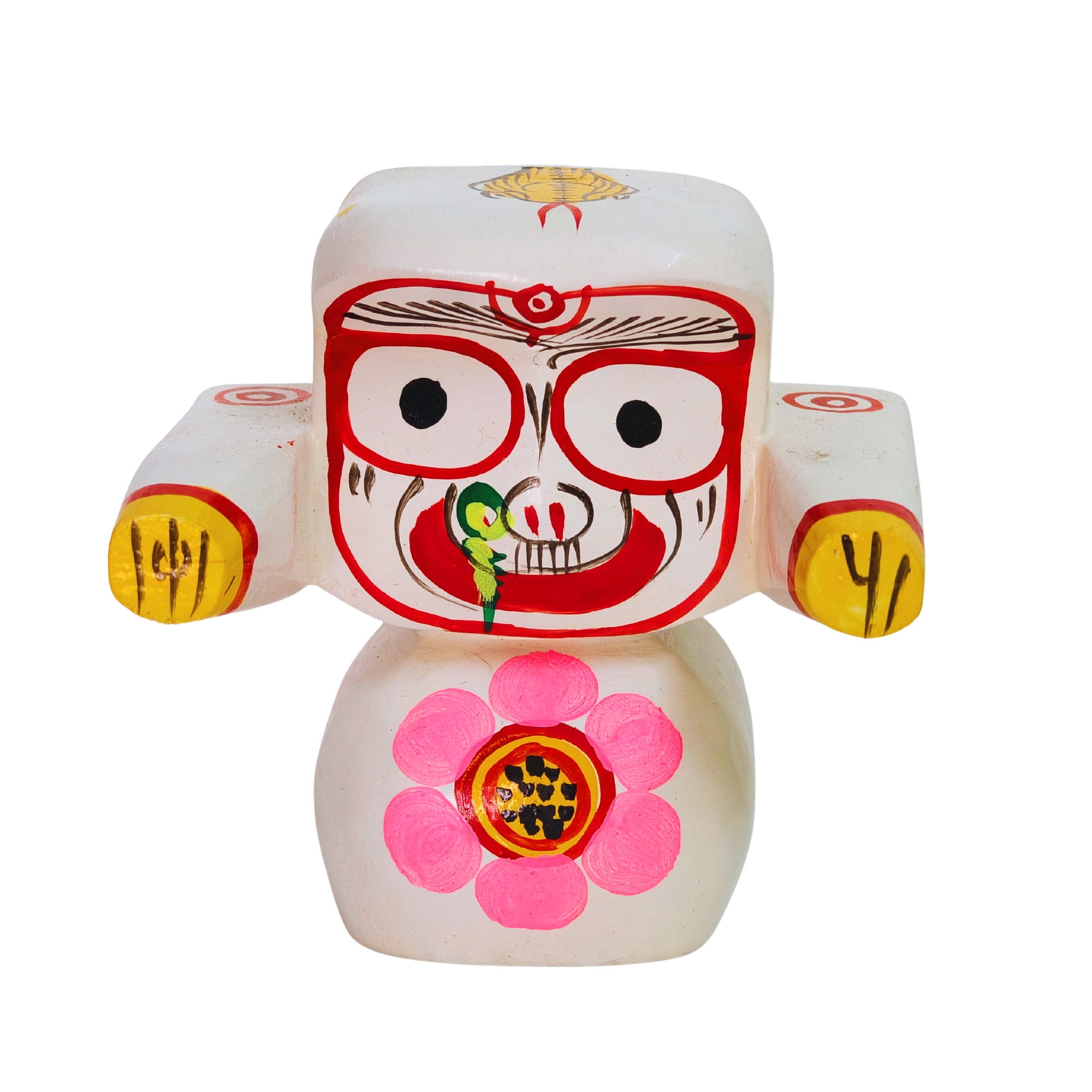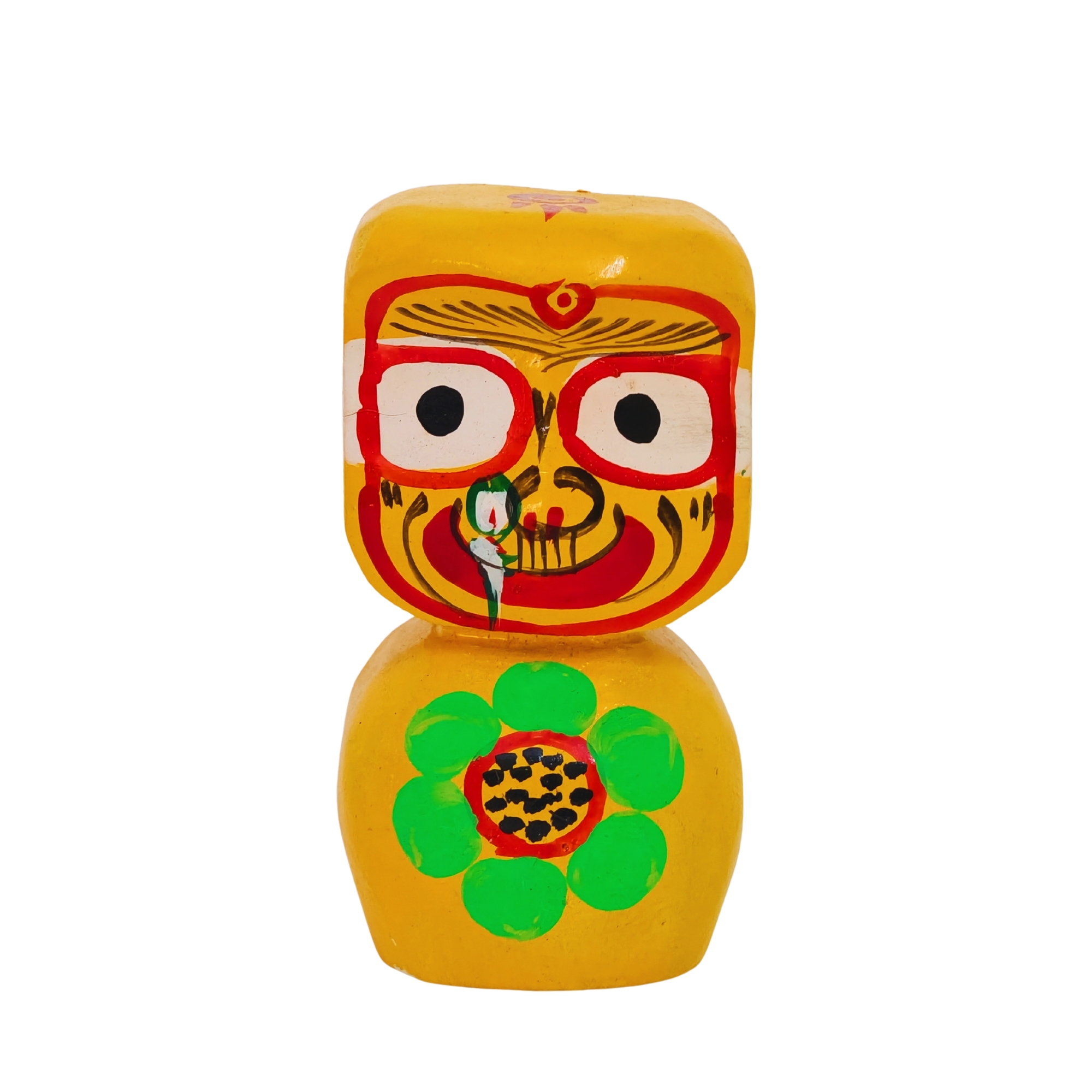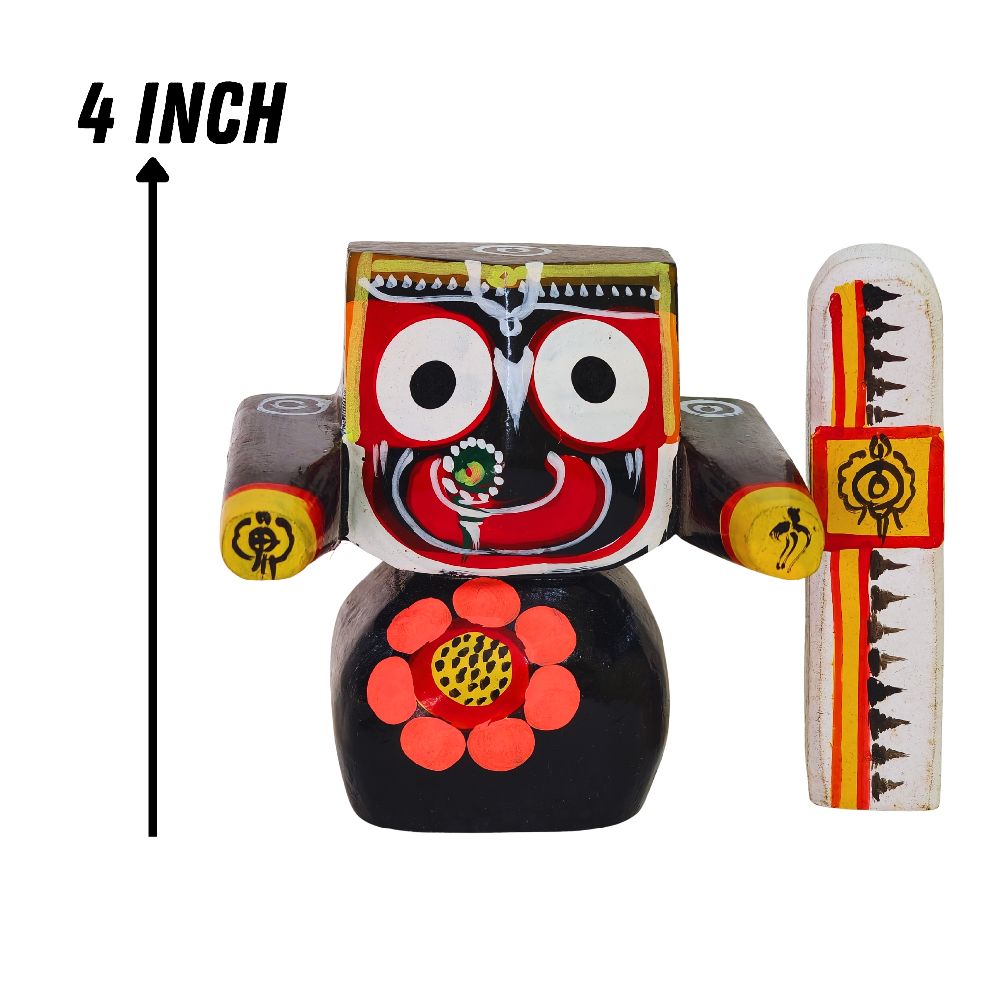 Beautiful handicraft colorful wood carved wooden idol of lord Jagannath balaram and subhadra Lord Krishna Abatar for living room, study room, hotels, office , corporate house , religious places, home temples, festive gifts.car dash board , gifting etc, In Unbreakable, Just Best for Your Home Temple or Dashboard Of Car. The brand comes with 2 decades of experience flourishing a comprehensive collection of handicraft items. carefully designed and crafted. Each product is a marvel and can be said to be a novelty and with no doubts their features and characteristics make them a worthy addition to your home decor collection. Size ( 4 inch. )
