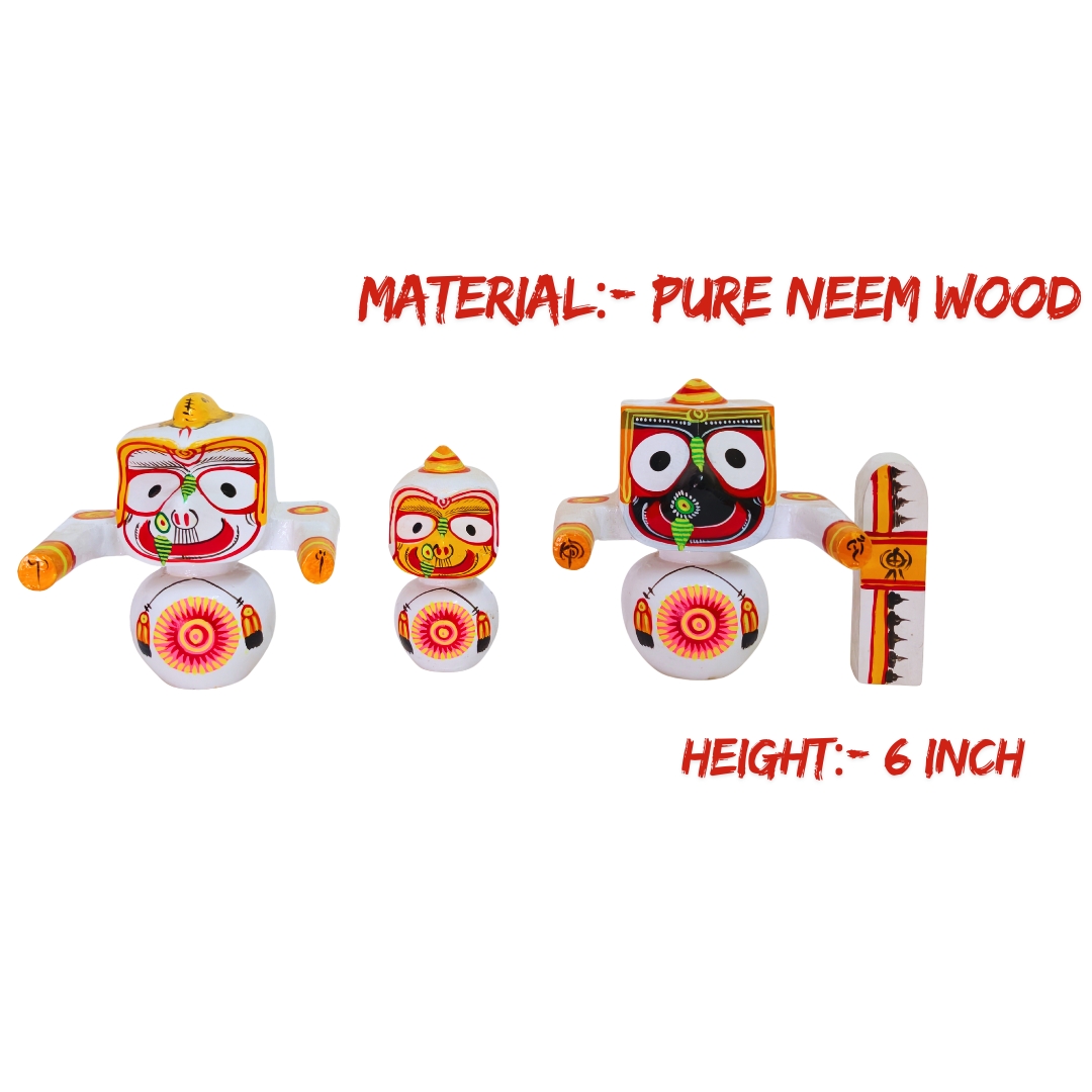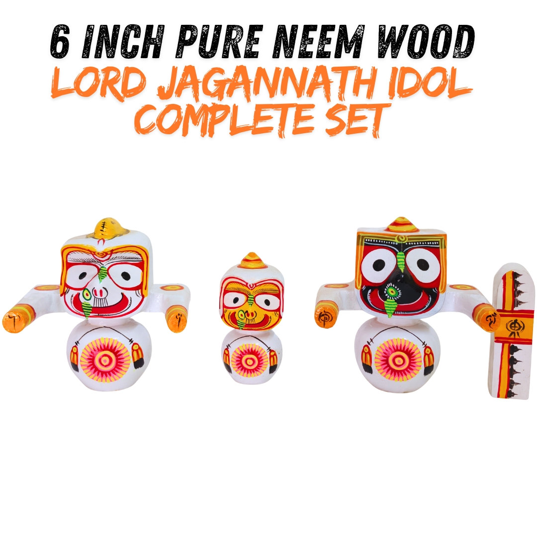 6 Inch Lord Shree Jagannath Idol complete Set in Pure Neem Wood – Handmade Murti
