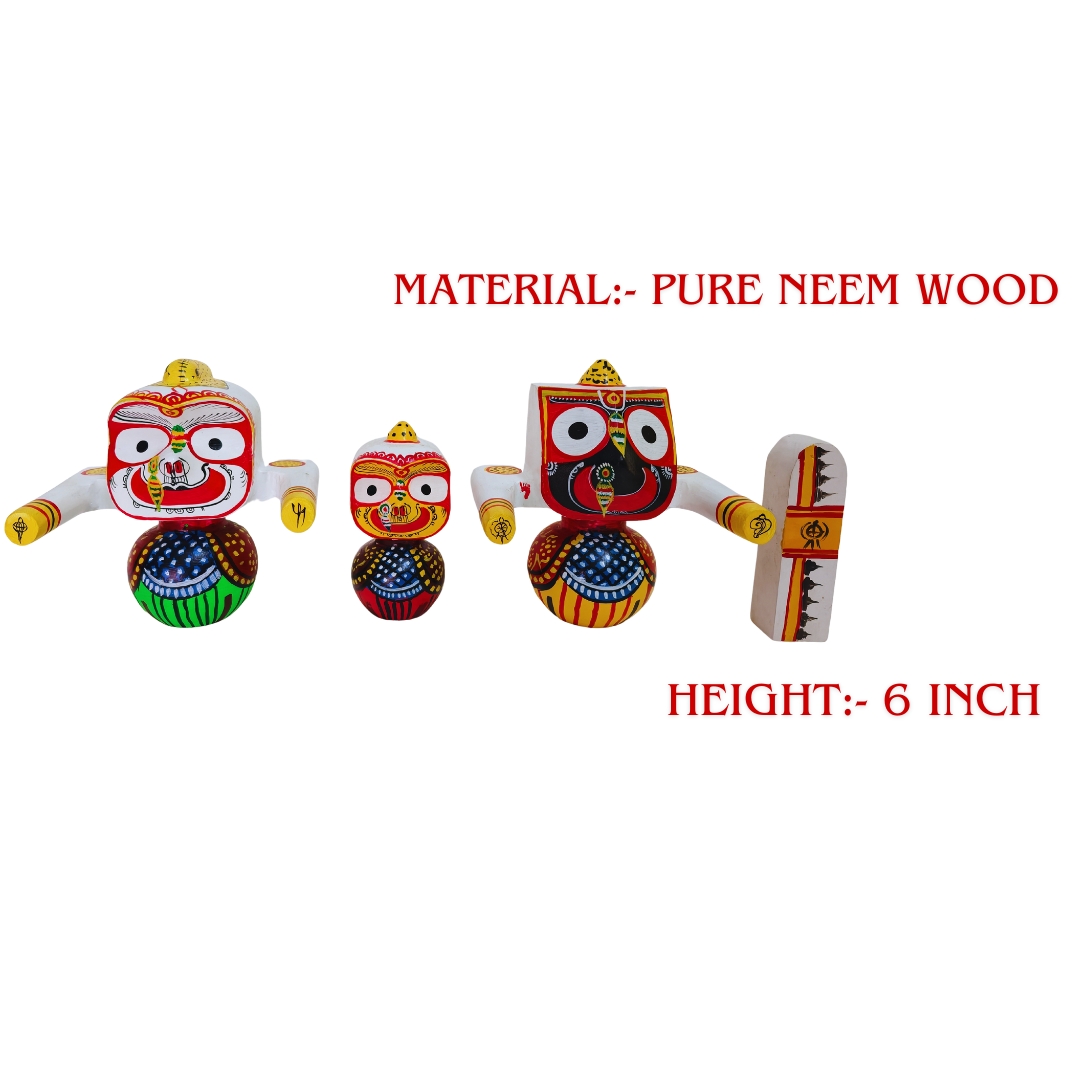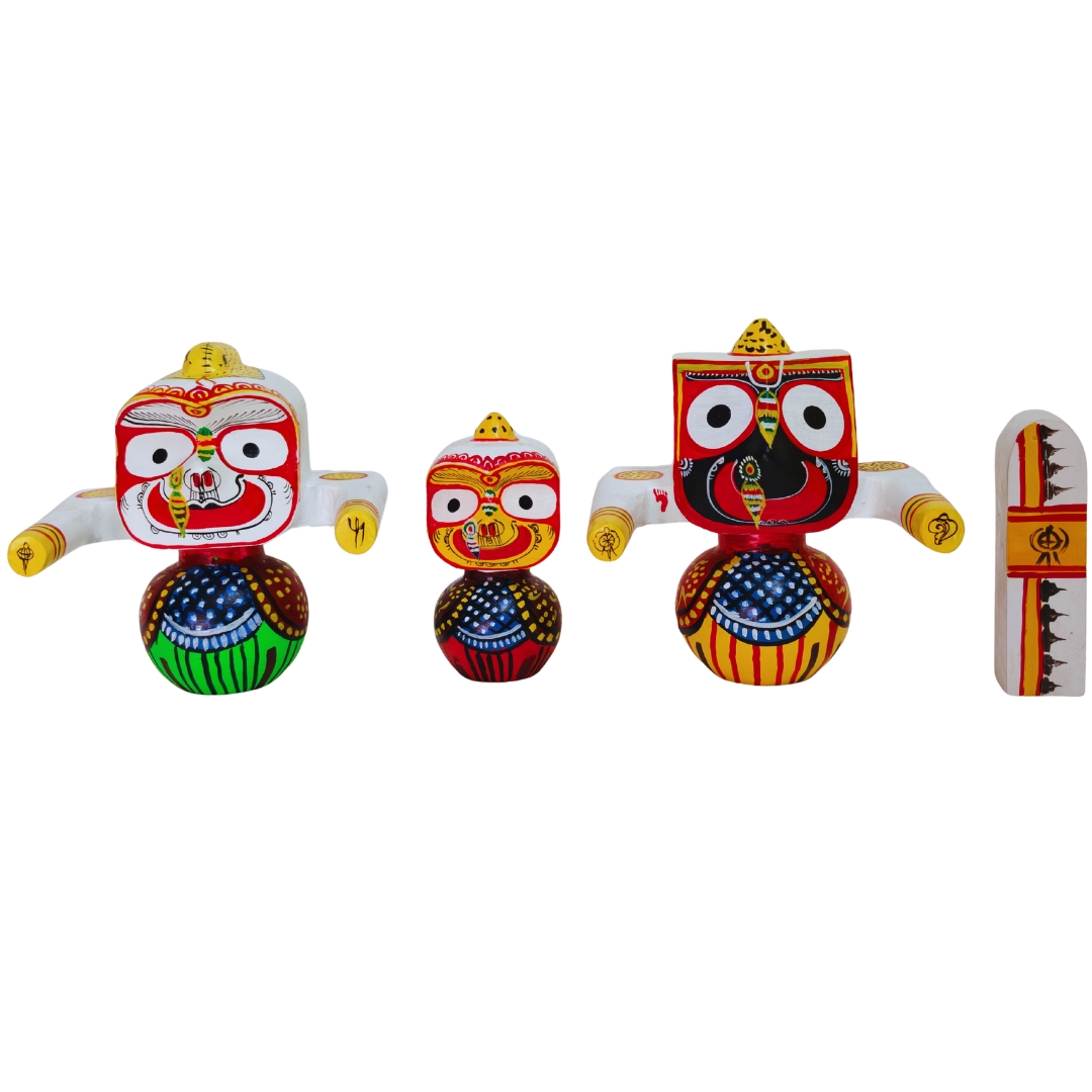 Designed in the traditional Puri style, the idols reflect the rich spiritual and cultural heritage of Jagannath worship in Odisha. Each piece is carefully crafted by skilled artisans to maintain the authentic and devotional appearance.