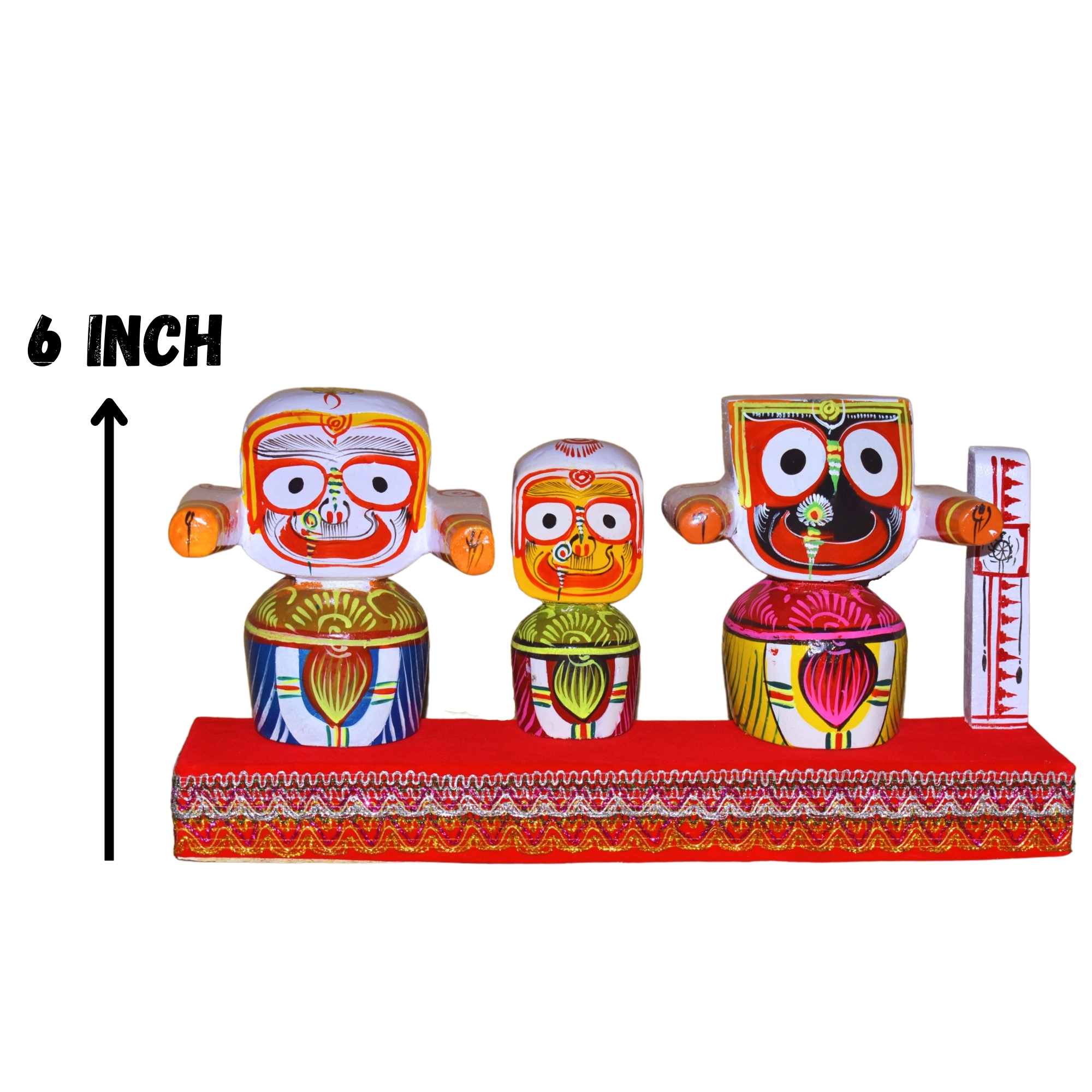 Lord Jagannath,Balabhadra,Subhadra and Sudarshan 6 Inch Idol in Wooden Stand,with Dress Set(Pack of 1, Multicolor)