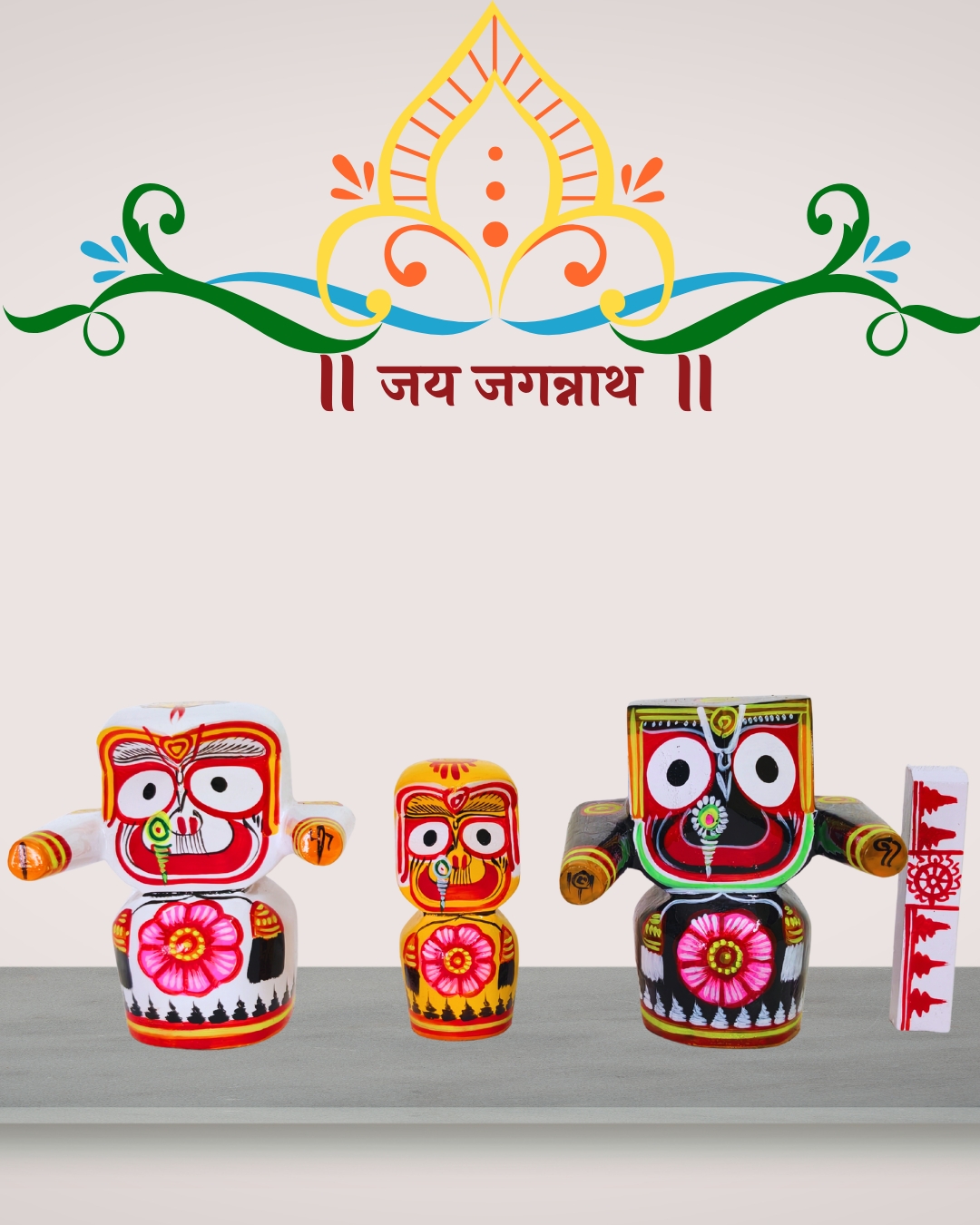 This idol set is suitable for daily worship, festival occasions like Rath Yatra, and gifting, representing traditional Indian handicraft and devotion.