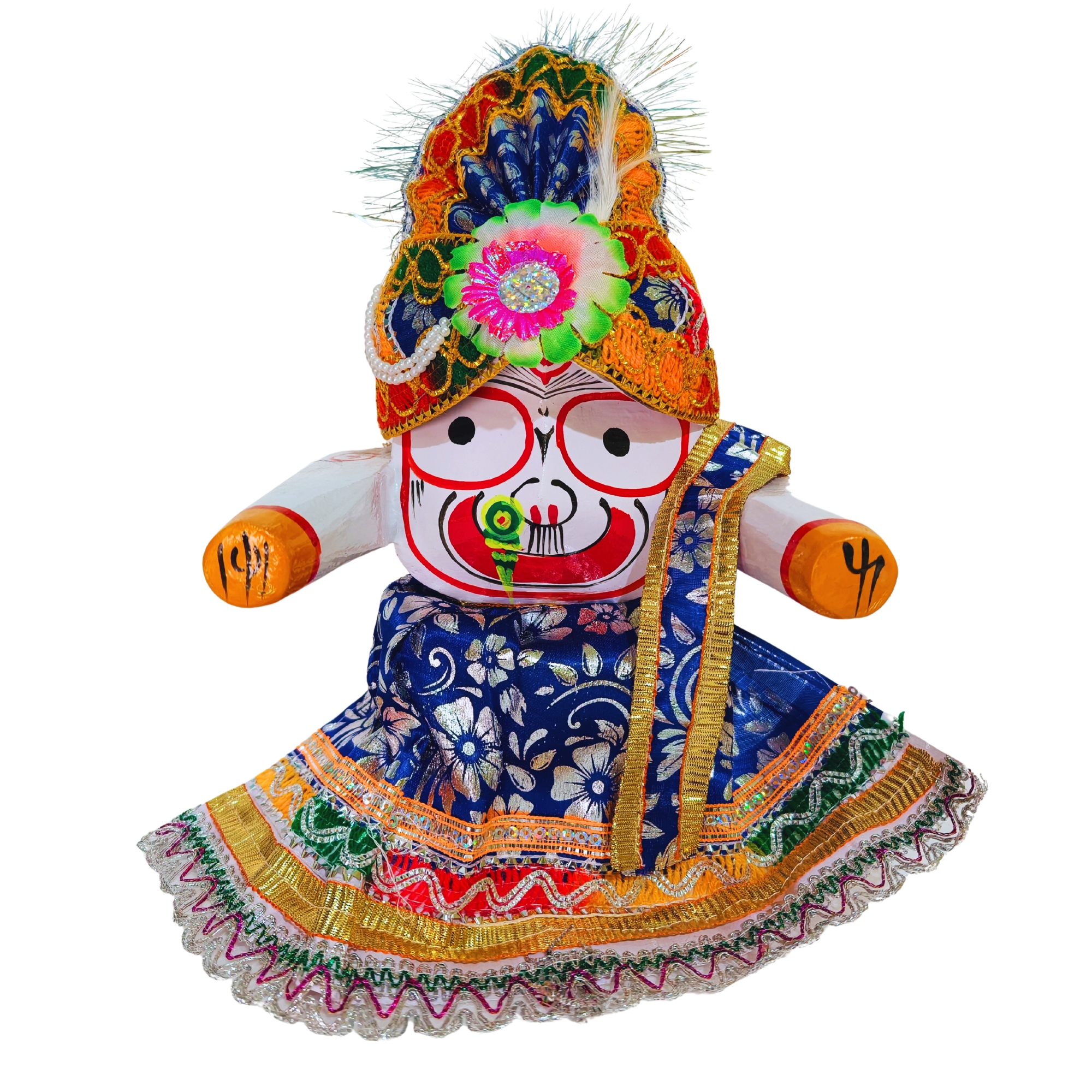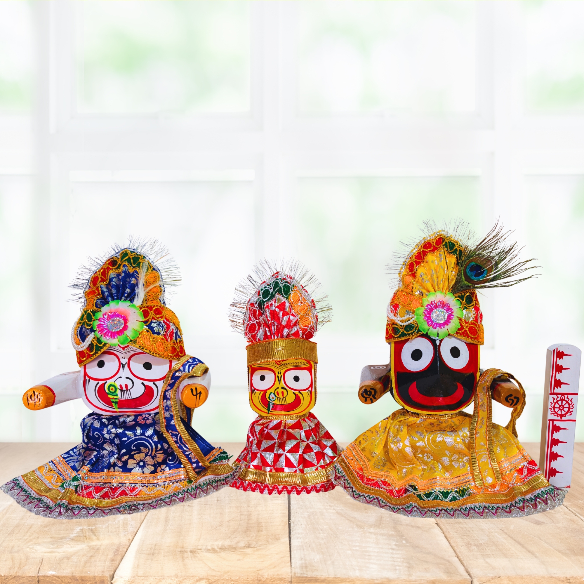 Lord Jagannath,Balabhadra,Subhadra and Sudarshan 6 Inch Idol in Wooden Stand,with Dress Set(Pack of 1, Multicolor)