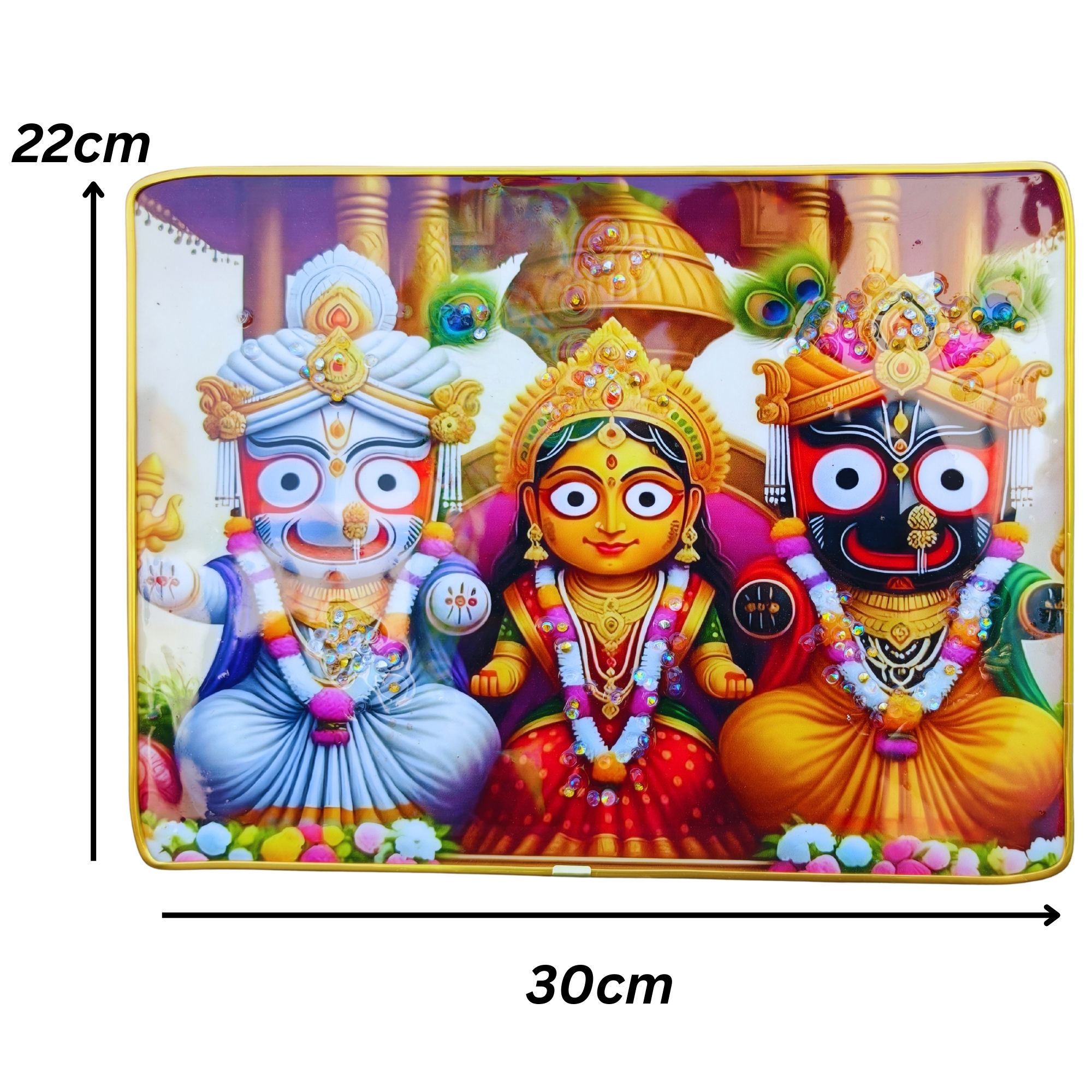 Lord Jagannath Crystal Wall Hanging with High Gloss Surface & Golden Slim Frame – Home Decor 45 x 30 cm