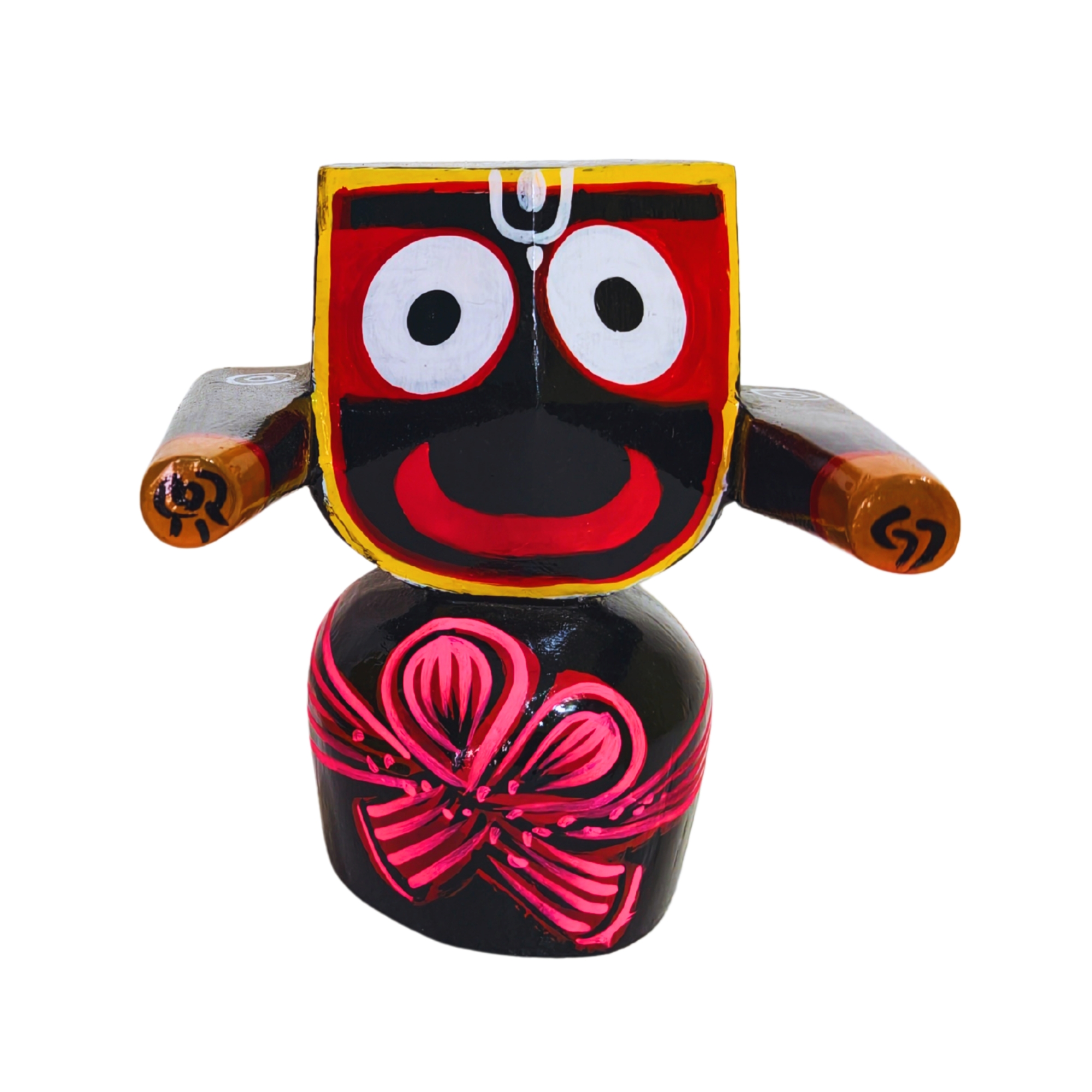 This RealCraft handcrafted wooden idol set features Lord Jagannath, Balabhadra, Maa Subhadra, and Sudarshan Chakra in a traditional devotional form. Each piece is made by skilled Indian artisans and finished in the classic sacred colors associated with the Jagannath tradition of Puri.