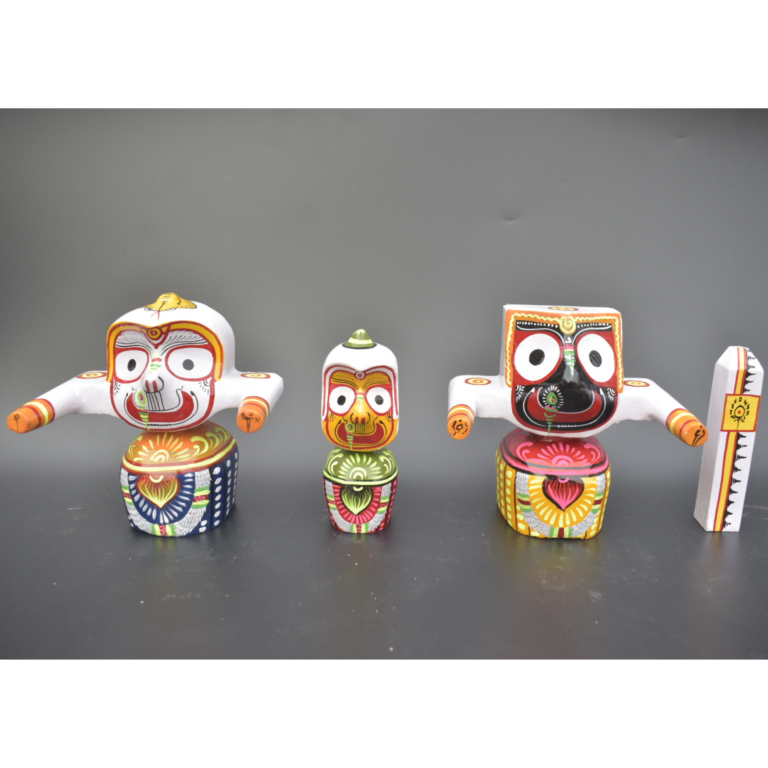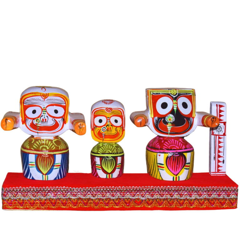 50 reviews for 4 Inch Handcrafted Pure Neem Wood Jagannath Idols Set – with Elegant Pagadi Dress