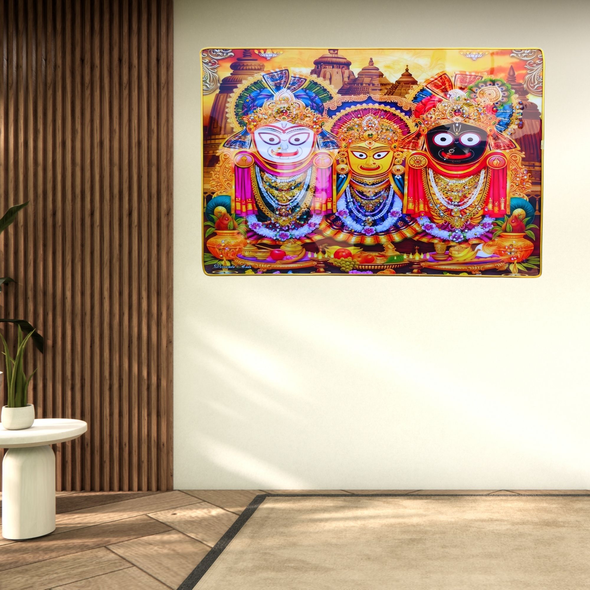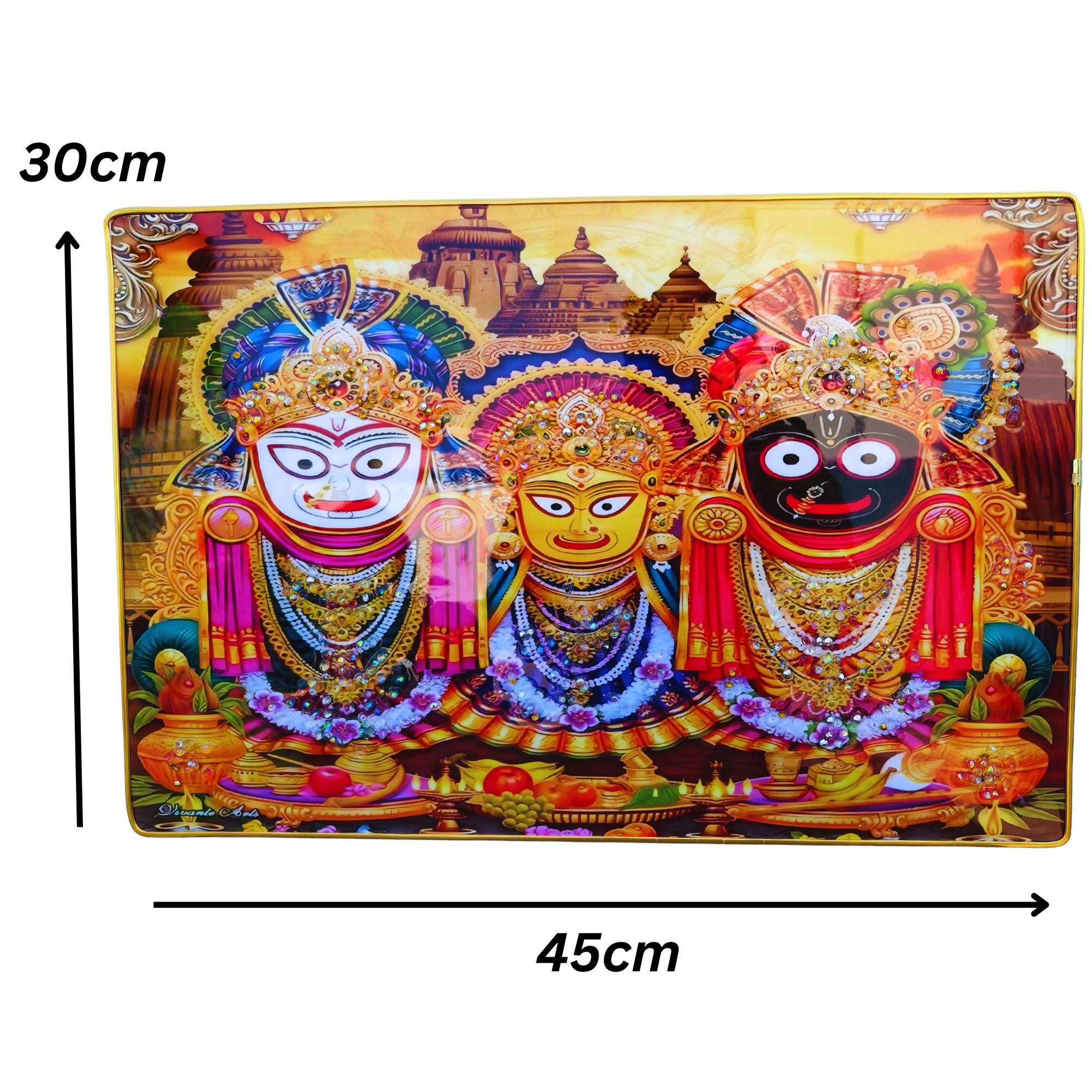 Lord Jagannath Crystal Wall Hanging with High Gloss Surface & Golden Slim Frame – Home Decor 45 x 30 cm