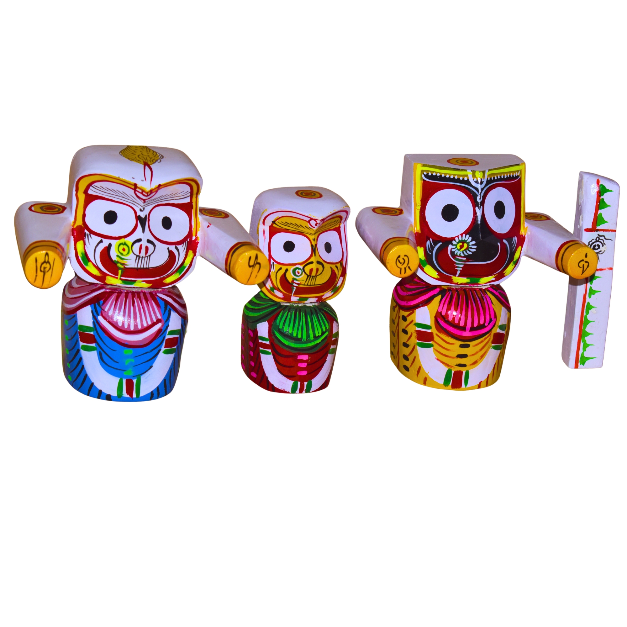6 Inch Lord Jagannath, Balaram, Subhadra Wooden Idol (Multicolour, Small) -15 Cm Height